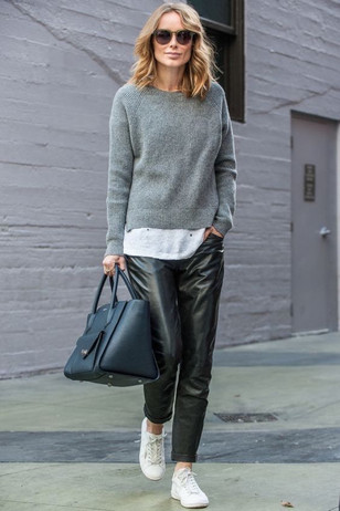 El detalle extra de este look es que cualquier sweater, polerón o cárdigan que se sume, va a generar un contraste muy interesante entre la textura del cuero y el tejido de punto del abrigo que selecciones.
