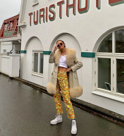 Al analizar los colores que componen su estilo nos encontramos con todos, especialmente los pasteles. Pero, cómo hace para que a pesar de que su estilo este basado tanto color y tanta mezcla, y así y todo tenga una línea estética ordenada. La inspiración morfológica aniñada y setentosa es lo que la distingue de otras referentes que implementan el mix&match en sus estilos.