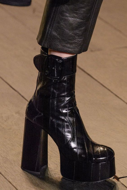 Directo desde los 70s, vuelve esa bota que tanto asociamos al estilo hippie y al disco (dependiendo su textura y terminaciones). Las famosas botas al tobillo de punta redondeada, con taco ancho y mucha plataforma.